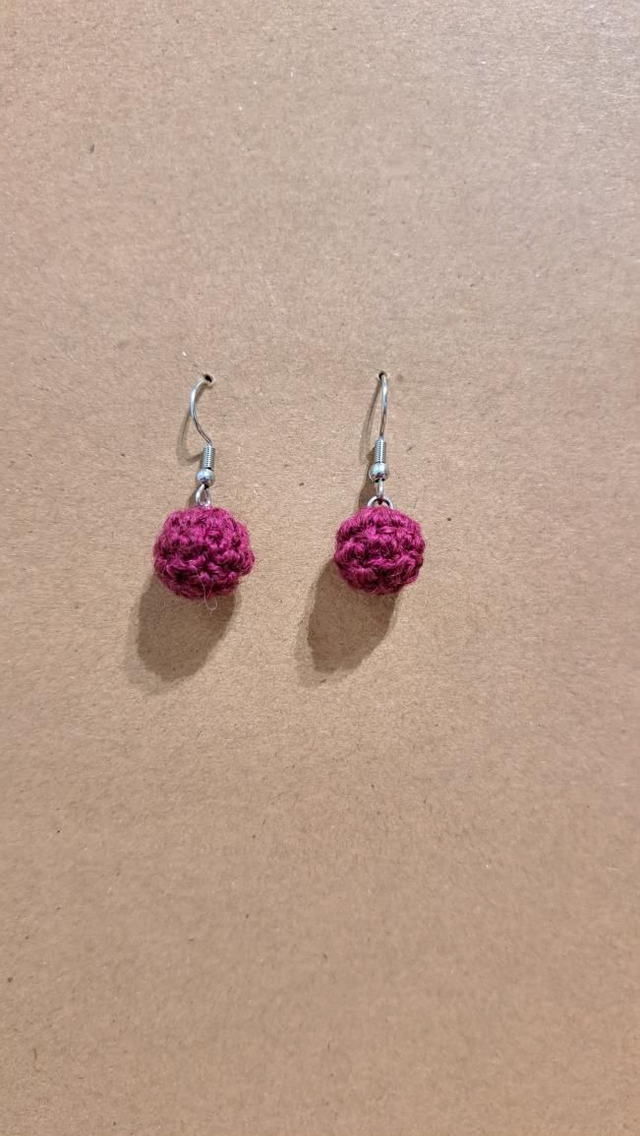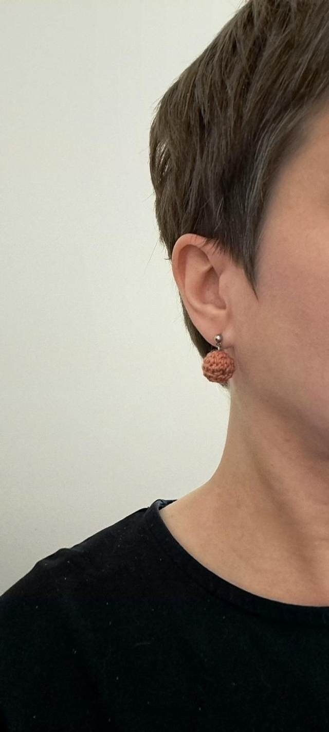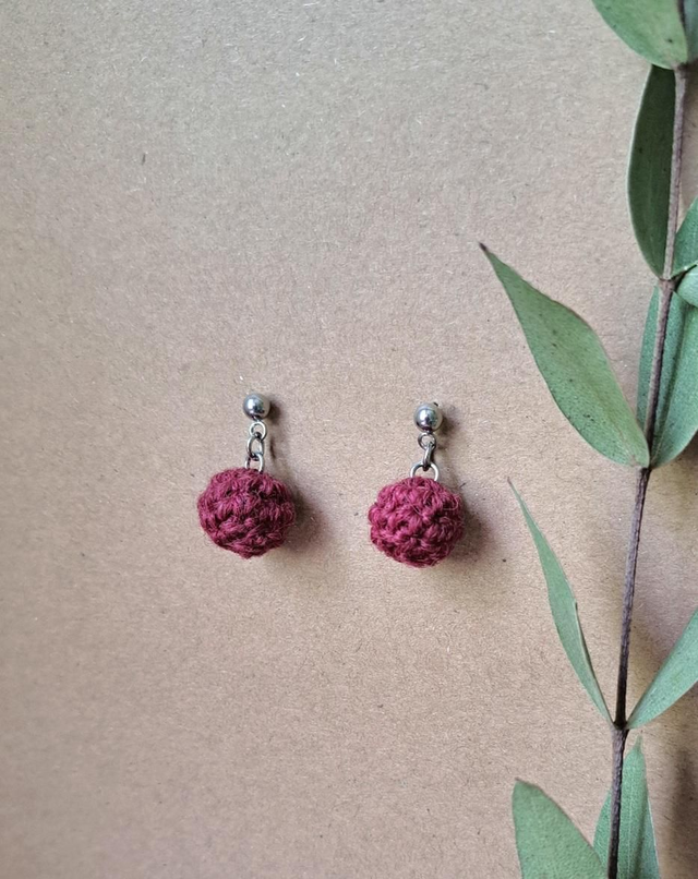 Luumu-korvakorut valmistetaan hitaasti ja huolella – suomalaisesta villasta tai silkistä. Villa tuo pehmeyttä, silkki hienovaraista kiiltoa – kumpikin tuntuu kevyeltä ja hyvältä korvissa. Jokainen pallo muotoutuu käsin virkkaamalla.